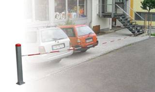 Diese preiswerte Parkplatzabsperrung arbeitet mit einem absenkbaren Drahtseil mit rot/weißen Kunststoff–Rohrabschnitten, die sich am Boden flachlegen. Serienmäßig ist die PAS 10 für 2 Stellplätze ausgelegt und kann bis max. 4 Stellplätze oder 10 m erweitert werden.